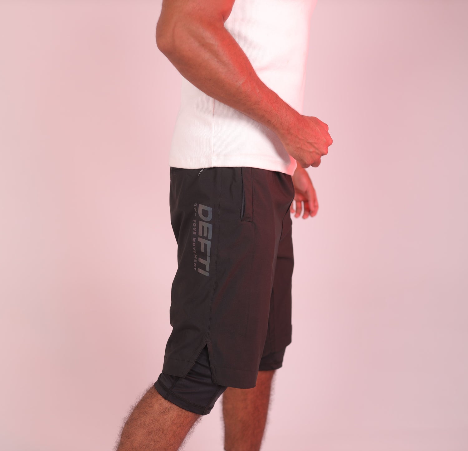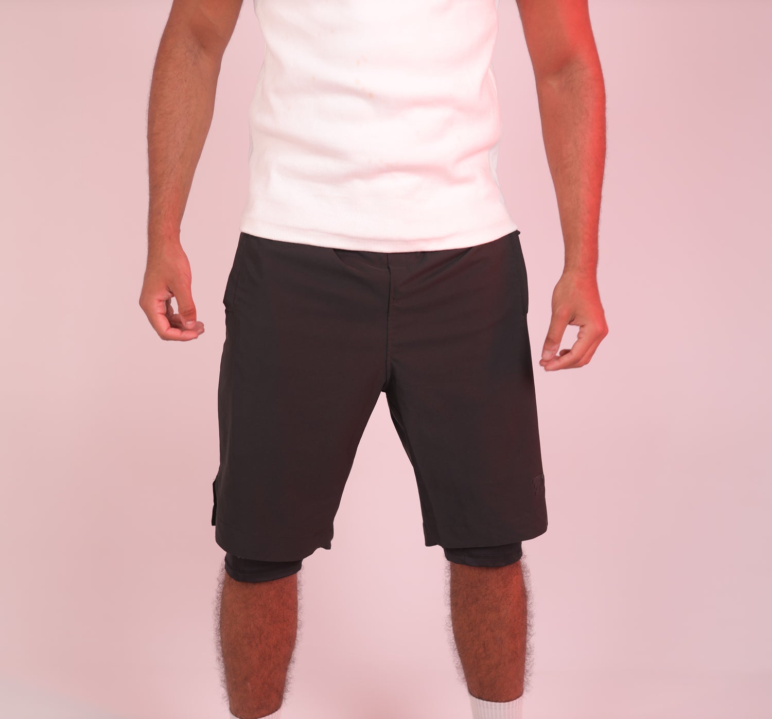men's athletic shorts with integrated leggings. 4-way stretch,
